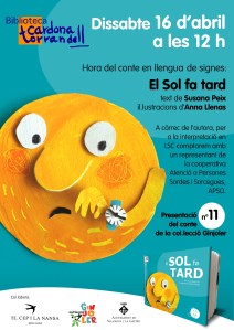 Si ens voleu acompanyar, estarem a la Biblioteca Armand Cardona a les 12h del migdia, cantarem el Sol solet i projectarem el dvd del conte…