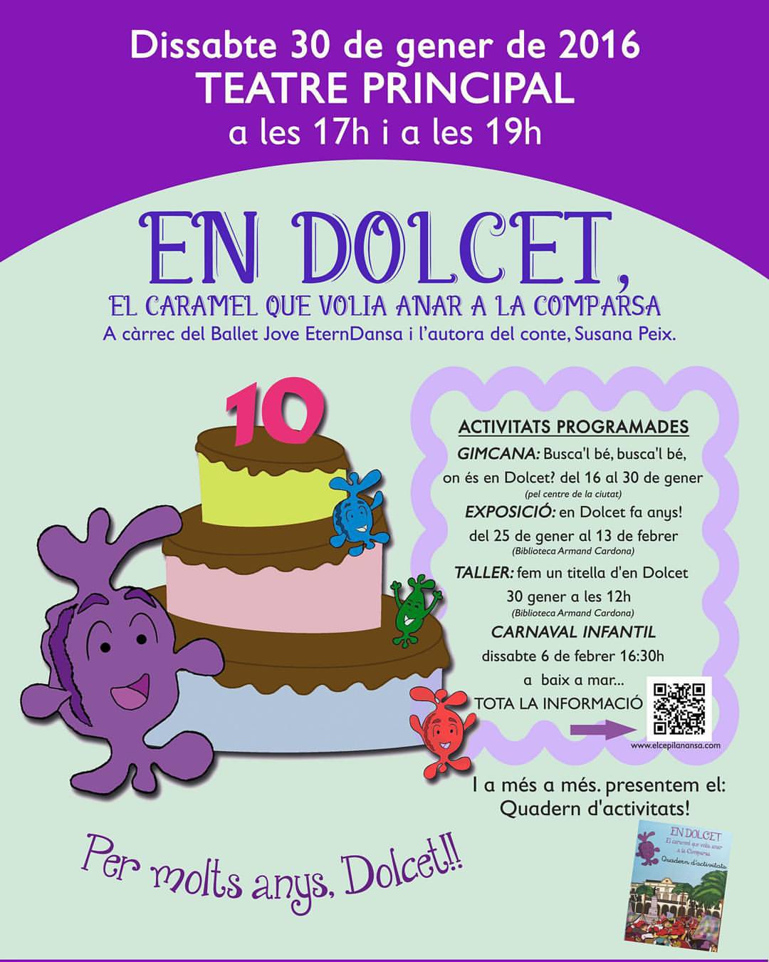 En aquest pòster recollim totes les activitats que farem aquest carnaval, a Vilanova i la Geltrú, per celebrar el 10è aniversari d’en Dolcet. Amb el hastag oficial #Dolcet10anys podreu estar al dia de tot el que anem fer a les xarxes socials! utilitza’l i comparteix el carnaval amb nosaltres!!