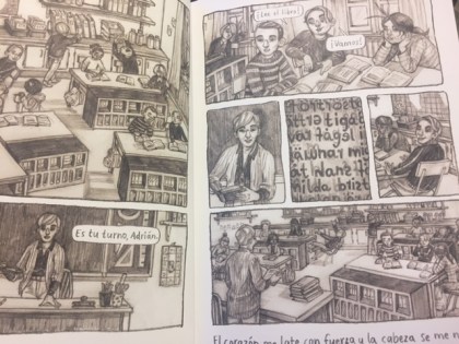 Un còmic meravellós que narra la història a través de les imatges realitzades en traç de llapis i amb uns tocs de text per acabar d’arrodonir la lectura. El color juga un paper important en la narració reflectint com he comentat anteriorment els sentiments del protagonista.