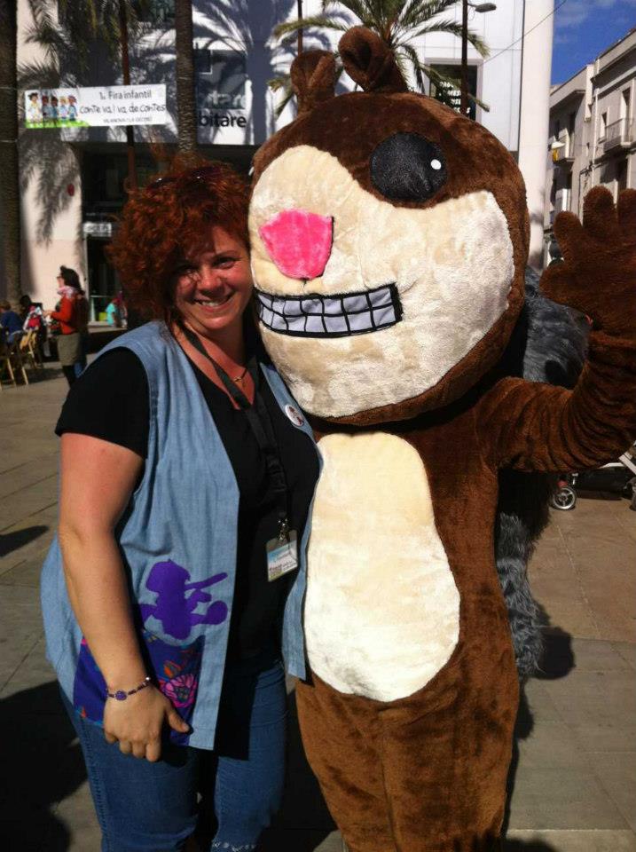 A la Fira Conte va! Va de contes, amb l’Esquirol poruc, el protagonista de la col·lecció de Castellnou [maig de 2013]