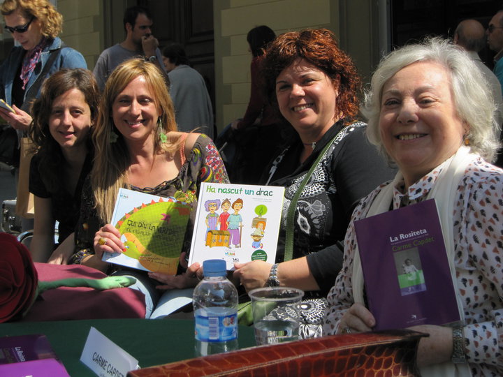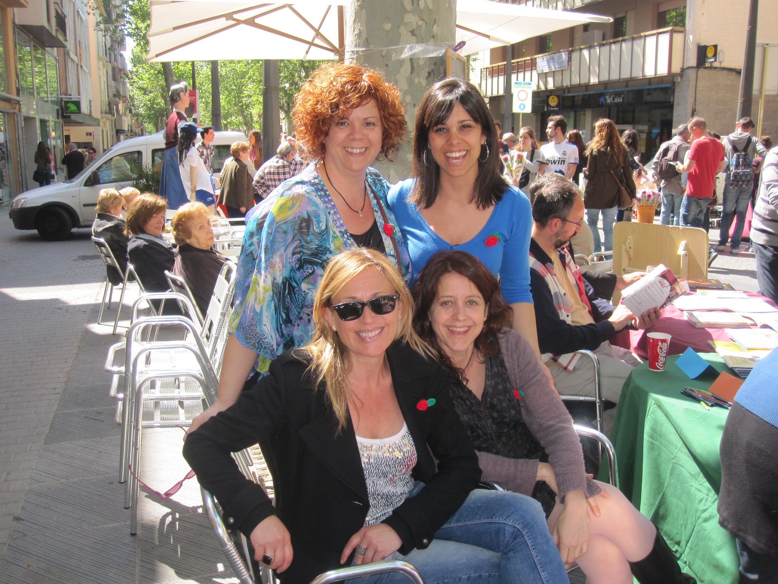 Amb la Montse Balada (autora), Cesca Mestres (editora) i Eva Sans (il·lustradora) Rambla principal de Vilanova i la Geltrú, Sant Jordi 2013. [abril 2013]