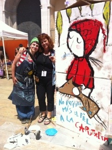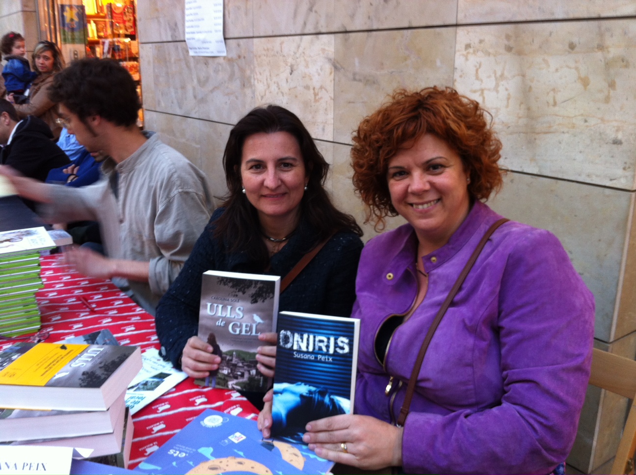 Amb Carolina Solé, autora del llibre Ulls de gel/Ojos de Hielo a la signatura de llibres de la Llibreria La mulassa, Sant Jordi 2013. [abril 2013]