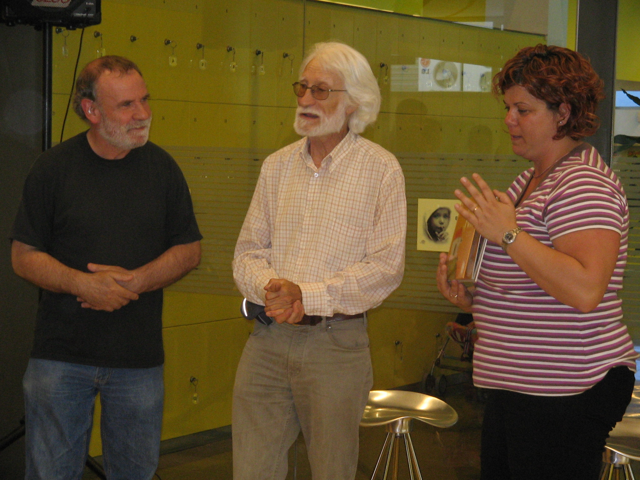 Pere Cabaret (il·lustrador), Lola Casas (poetesa) i Helena d’APSO a la presentació de Tot l’Any [octubre 2010]