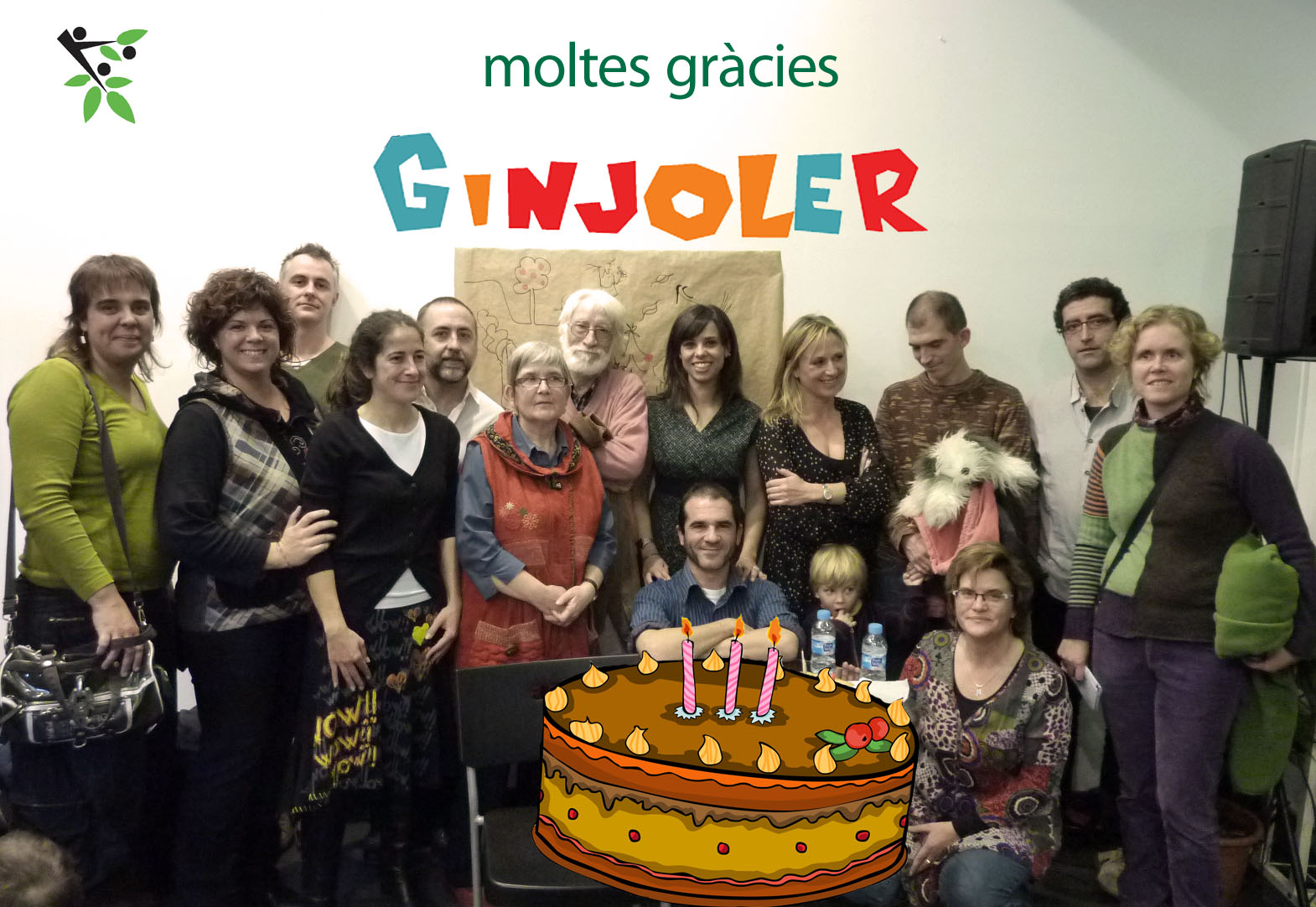 Amb Pere Cabaret (il·lustrador), Sebas Martín (il·lustrador), Lola Casas (autora), Enric Larreula (autor), Cesca Mestres (editora), Montse Balada (aturora), Miquel Ribas (autor), JuanolO (il·lustrador) i Marta Minella (autora). També ens acompanyen: Núria Amer, Montse Virgili i l’Isa d’APSO. A la celebració del 3r any de la Col·lecció Ginjoler. [octubre de 2010]