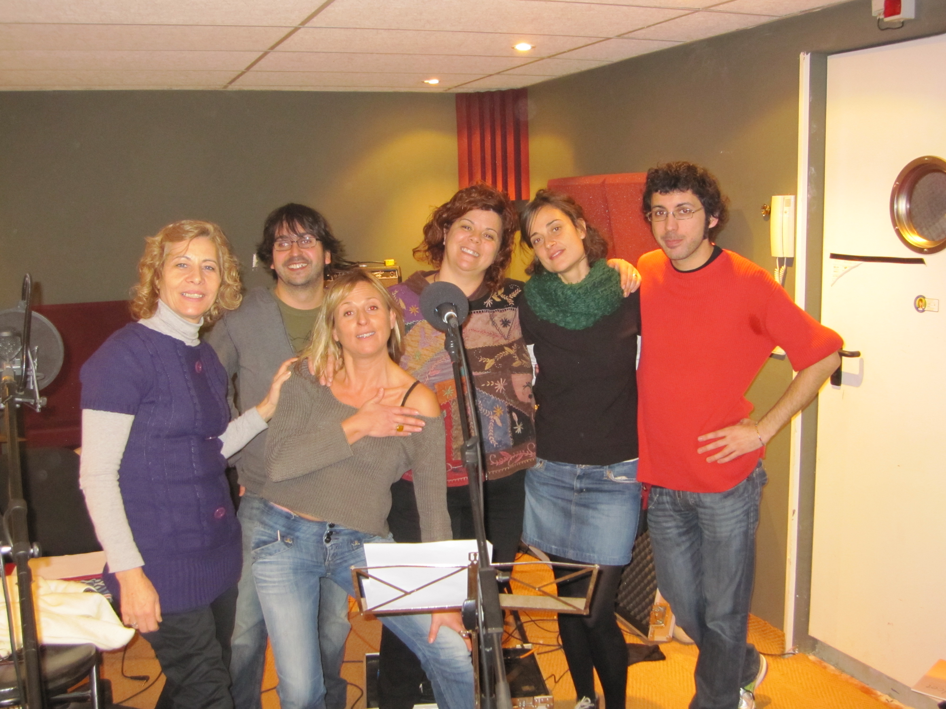 Fina Redondo (actriu), Lluís Amaré (artista), Montse Balada (autora), Noemí Elvira i Guillem Albà (actor). A la gravació de l’àudioconte d’en Dolcet.