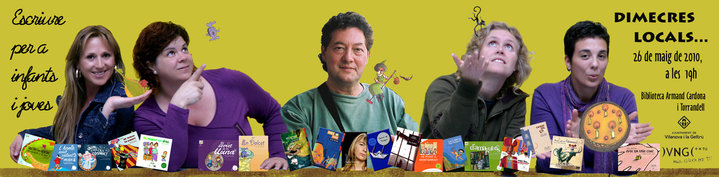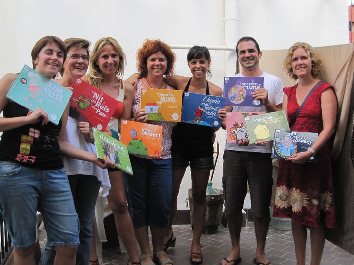 A dalt començant per l’esquerra: Vicenç Aguado (autor), Eva Sans (il·lustradora), Sebastià Serra (il·lustrador), Montse Balada (autora), JuanolO (il·lustrador).