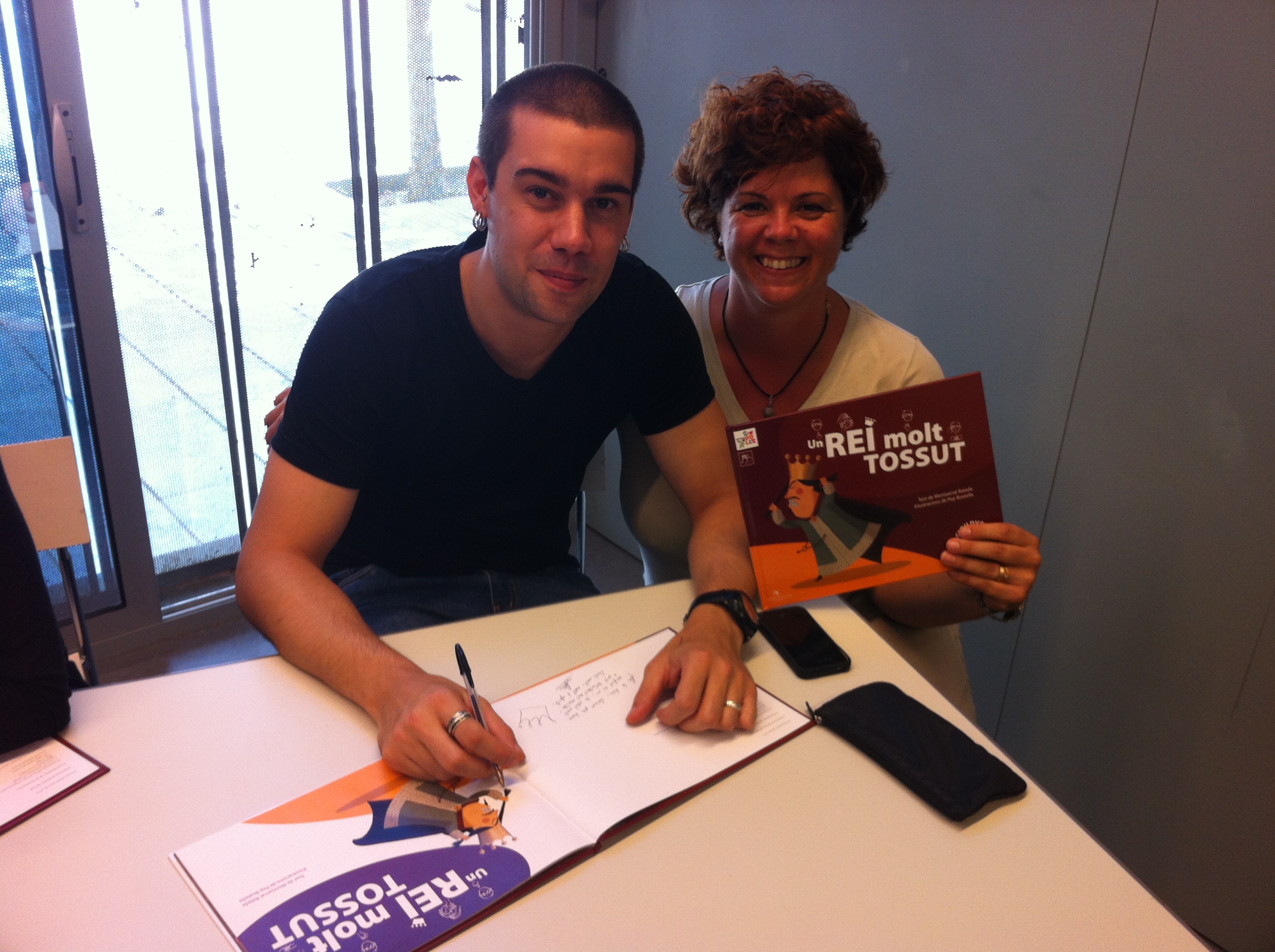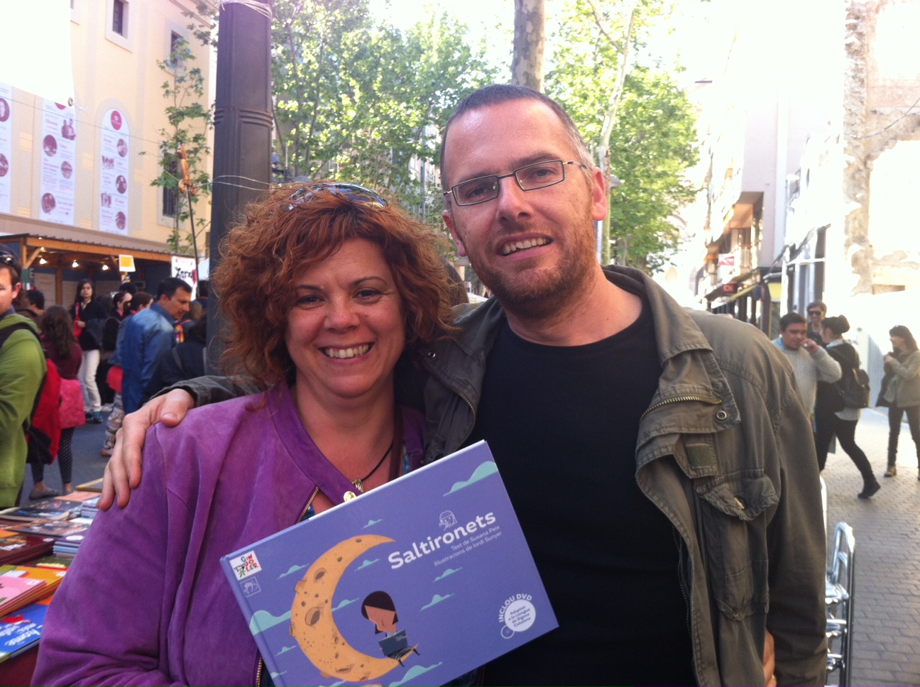 Amb Jordi Sunyer il·lustrador del meu Saltironets! a la signatura de llibres de la Rambla principal de Vilanova i la Geltrú, Sant Jordi 2013 [abril 2013]