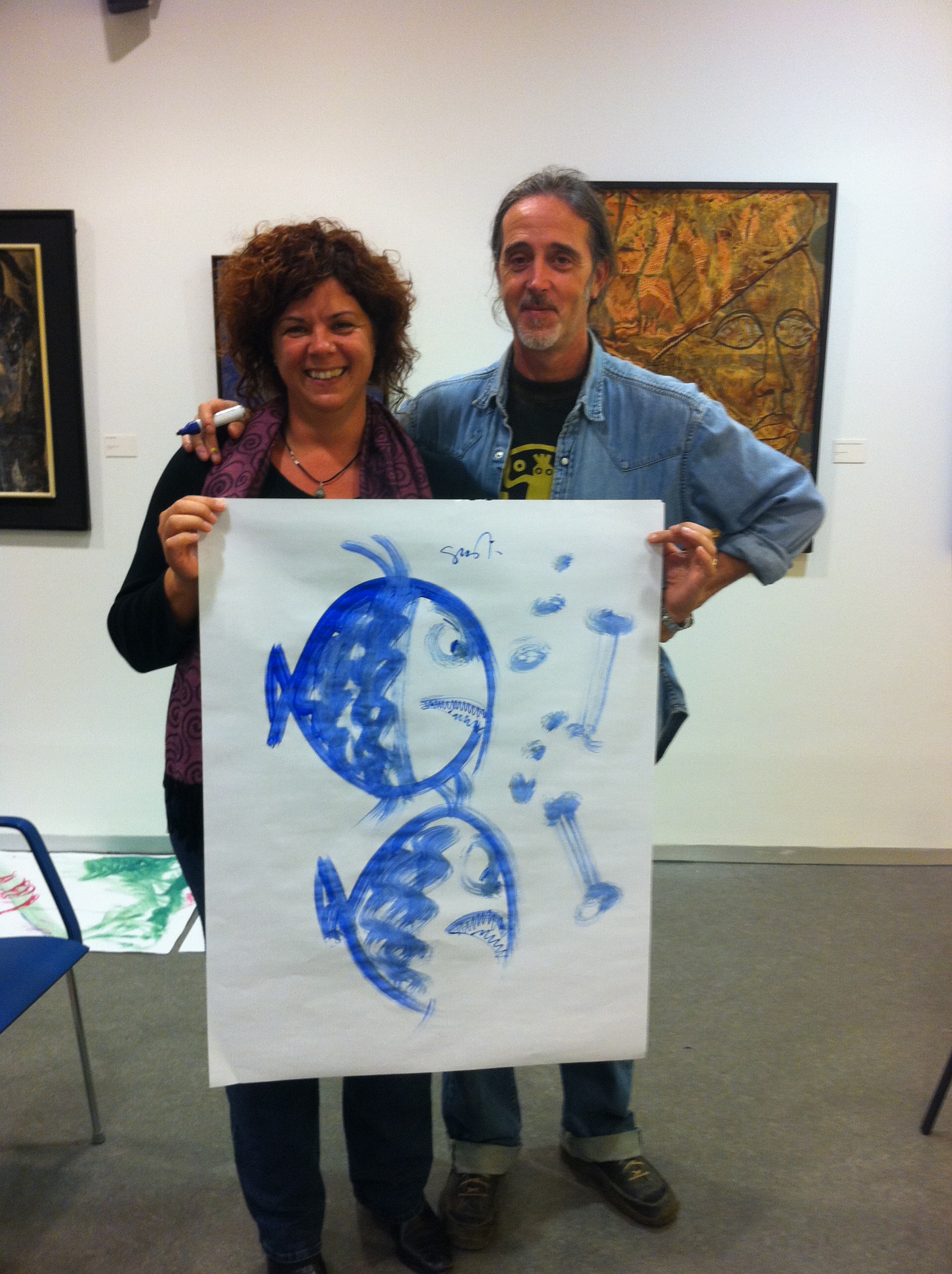 Amb l’il·lustrador Miguel Gallardo, en una activitat de Picto escriptura de Voxprima [gener 2014]