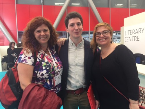 A la Feria del Libro infantil y Juvenil de Madrid amb Juan Antonio Moreno director i productora a Making DOC i Manuel Cristobal productor de cinema a Dragoia Media [juny 2016]
