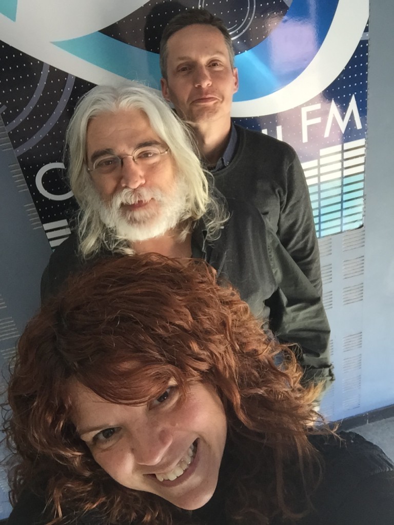 Amb la col·laboradora del programa de ràdio Montse Balada, la Violeta Amargant Cap del Servei Educatiu de l’Auditori de Barcelona i el Xavi Ramiro il·lustrador del llibre-cd Planeta Clarinet quan van venir al Més content que un gínjol (desembre 2015)