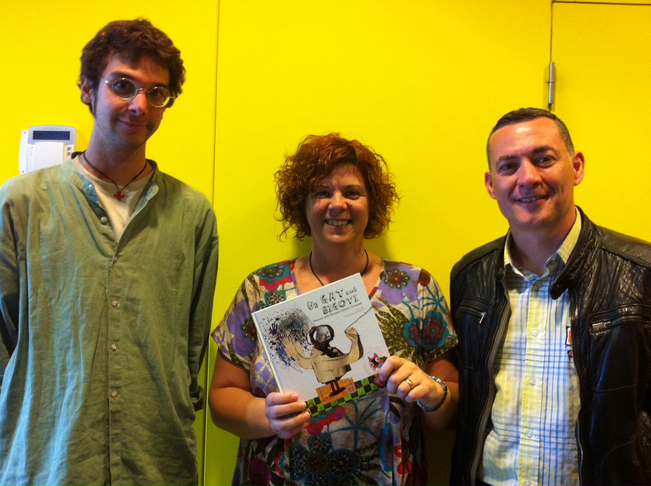 Amb l’escriptor Jaume Copons i l’il·lustrador Òscar Julve en una entrevista al programa Més content que un gínjol (març 2016)