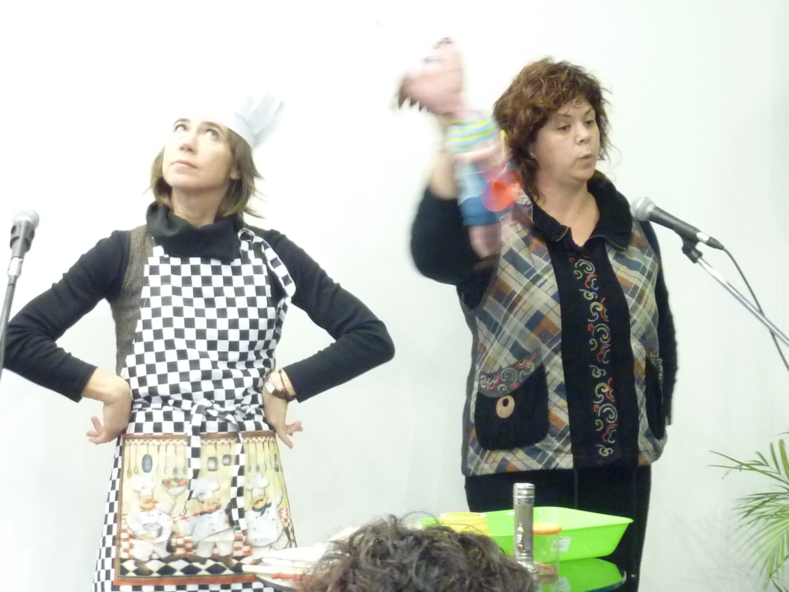 Montse Balada (autora)a la presentació del conte: Un rei molt tossut, Pep Boatella (il·lustrador) editat pel Cep i la Nansa. [setembre 2012]