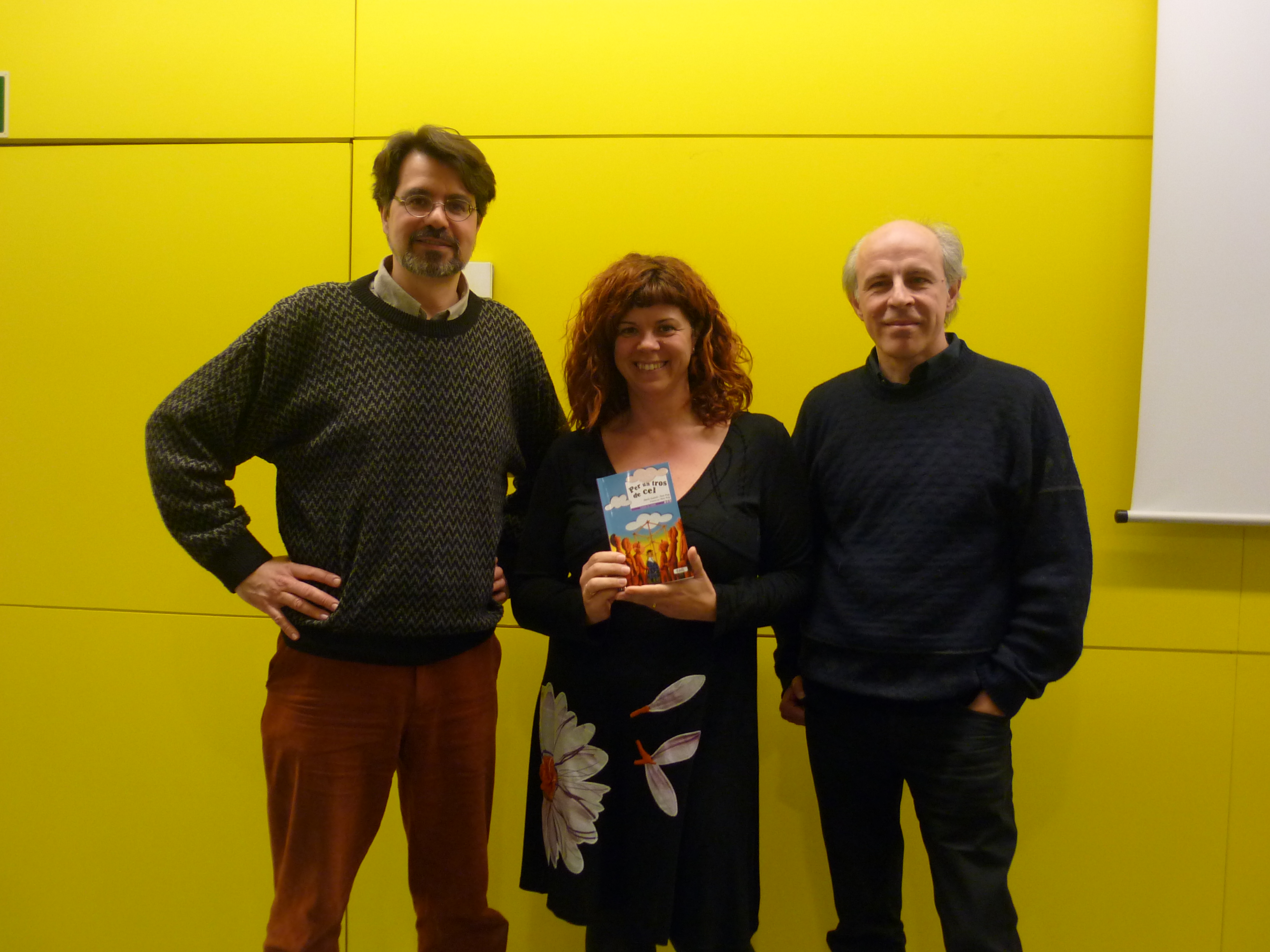 Presentació d’Hug el porug de la col·lecció Ginjoler a la Biblioteca. Amb Mercè Ubach i Lluís Farré, 22 de novembre de 2014..