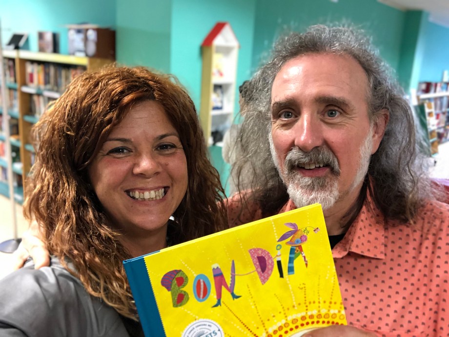 Darabuc (autor) i JuanolO (il·lustrador) a la presentació de La Bruixa Lletjards publicat pel Cep i la Nansa edicions.